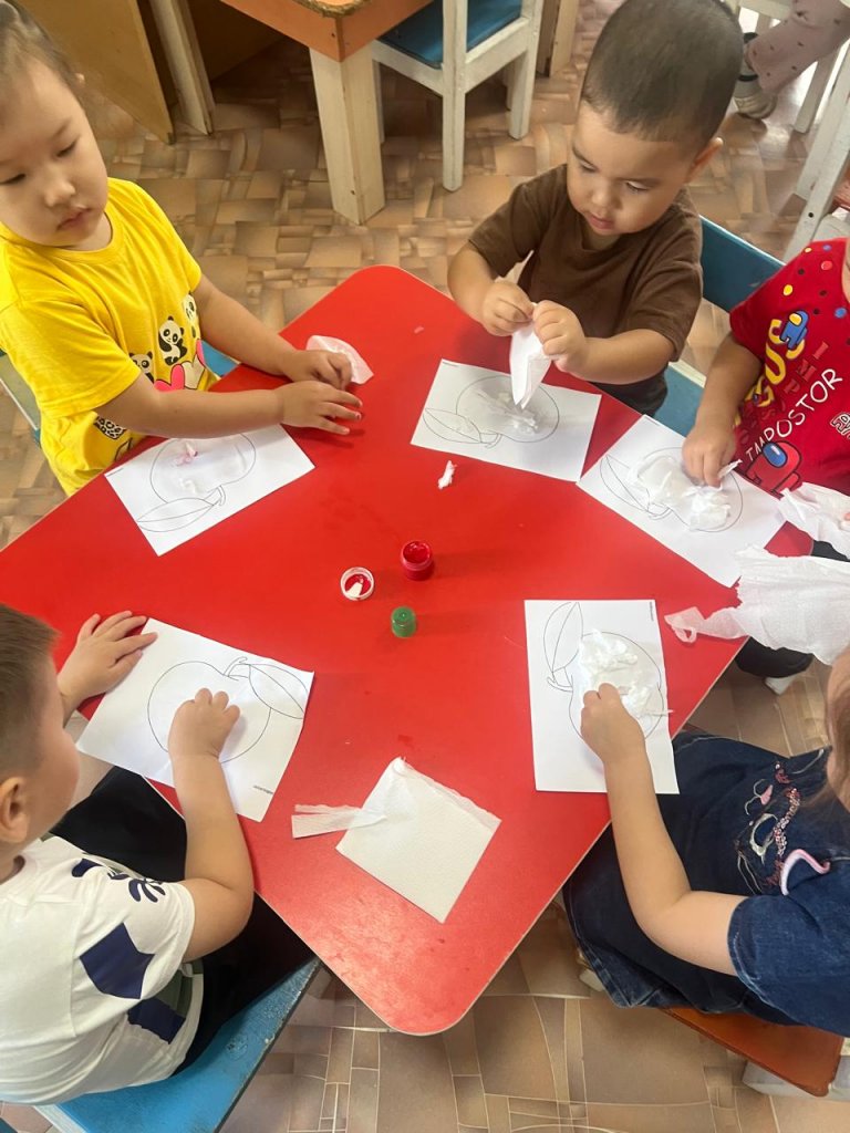 Балаларымыздың еңбегі нәтижесінде әдемі, түрлі-түсті 🍏🍎🍏 алмалар пайда болды.