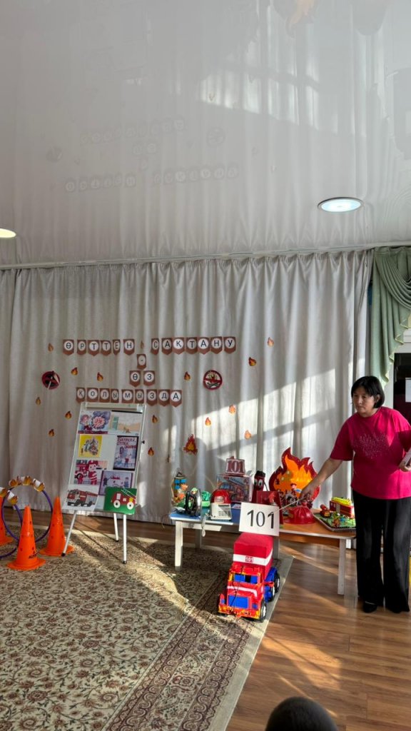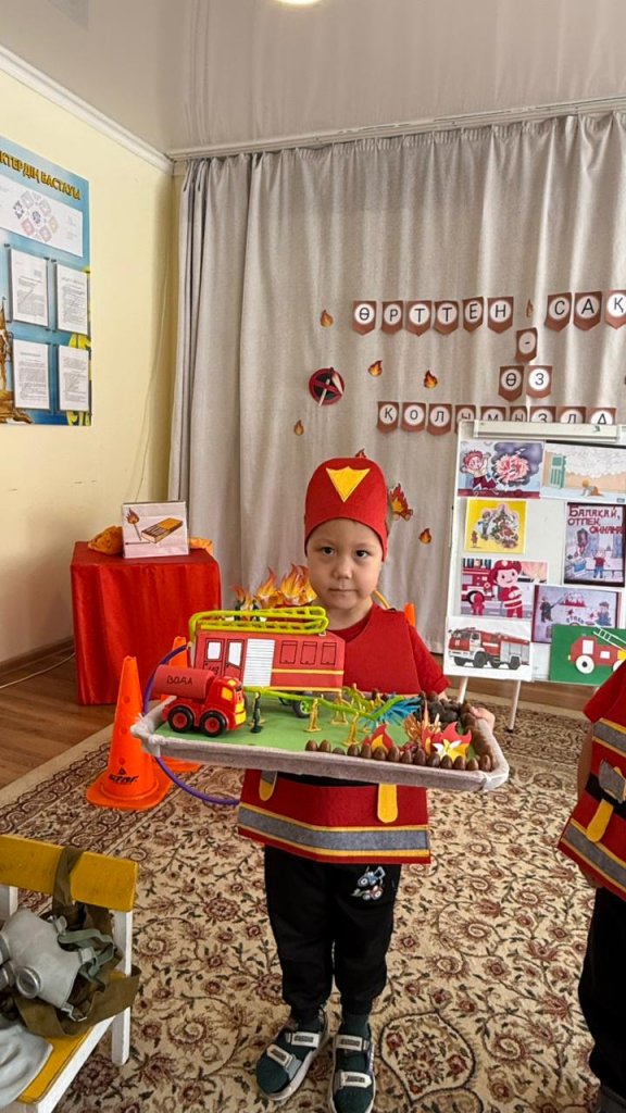🐰 Сонымен қатар ертегі кейіпкері Қоян қонаққа келіп, балаларды от жағудың қауіпті екенін түсінуге жетеледі. Балалар қонаққа келген кейіпкерге өрт қауіпсіздігі ережелерін айтып, сіріңкемен ойнауға болмайтынын және отты рұқсатсыз жағудың қауіпті екенін түсіндірді. Ата-аналар осы тақырыпқа байланысты макеттер дайындап, тәрбиешілер көрме жұмысын ұййымдастырды
