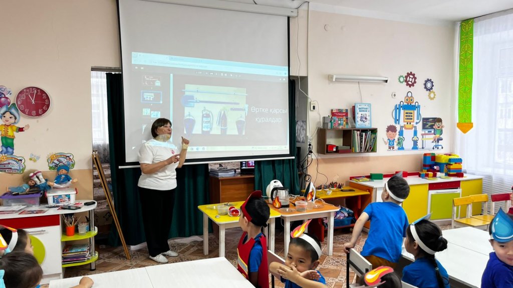 Іс-шара барысында балалар өрт қауіпсіздігі ережелерімен танысып, қауіпті жағдайда өзін дұрыс ұстау жолдарын үйренді. Бүлдіршіндер «Ұшқын» және «Тамшылар» топтарына бөлініп, өртке байланысты сұрақтарға жауап беріп, тақырыптық суреттермен жұмыс жасады.