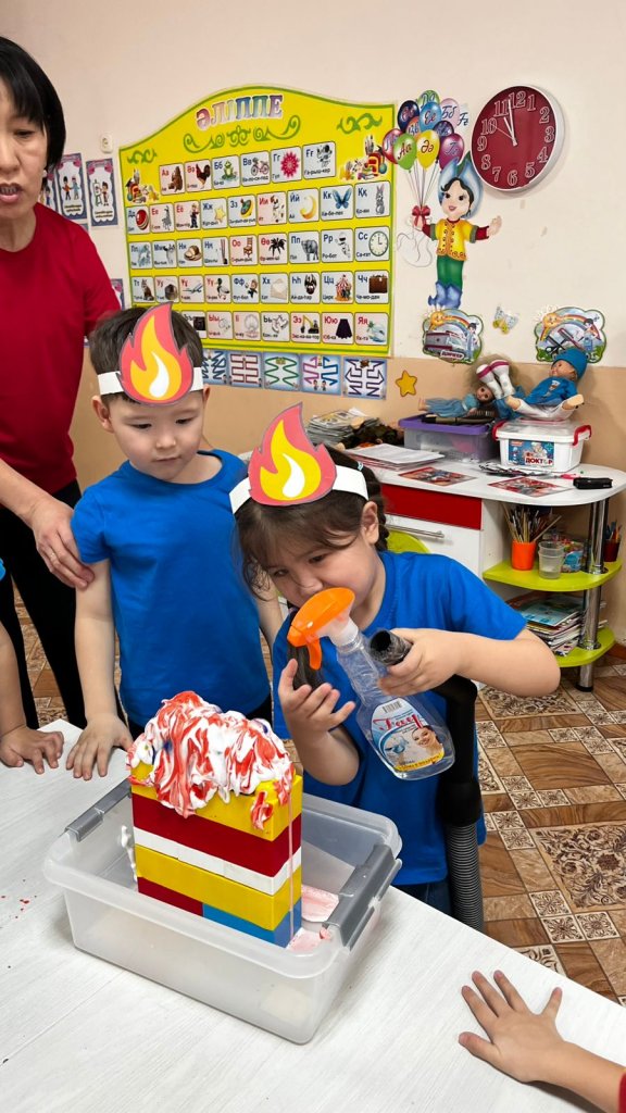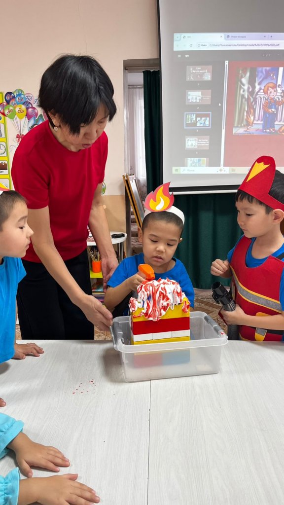 Тәжірибелік жұмыс кезінде балалар өртті немен сөндіруге болатынын тәжірибе арқылы түсініп, өз білімдерін көрсетті. Іс-шара балалардың қызығушылығын арттырып, қауіпсіздікке деген жауапкершілігін қалыптастырды. 🚒✨