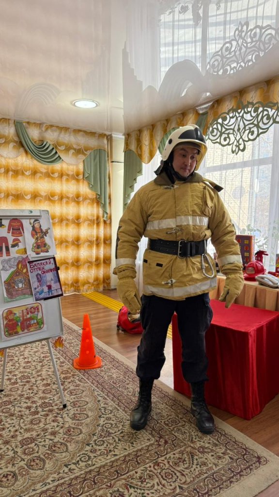 Балалар өрт сөндірушілердің арнайы киімдерімен, құрал-жабдықтарымен танысып, олардың қалай жұмыс істейтінін білді. Қорғаныс киімін, дулығаны, арнайы құралдарды көріп, үлкен қызығушылық танытты.