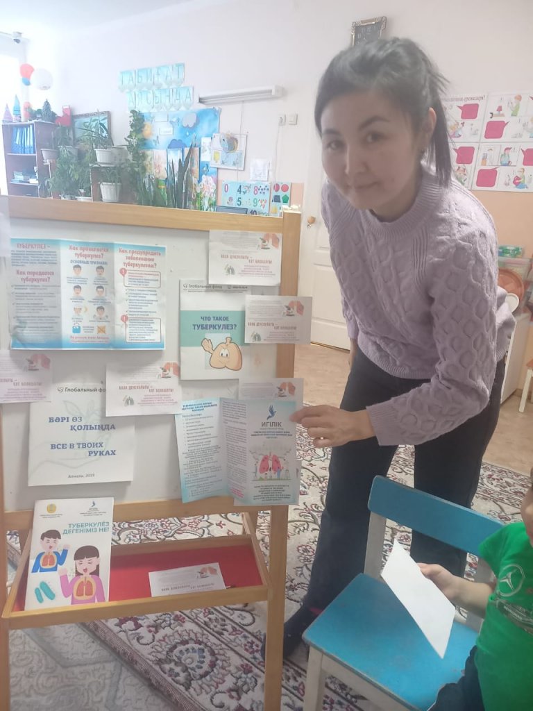 "Еркетай" ересек тобында ата-аналармен «Туберкулез, балаларыңызды ескертіңіз және қорғаңыз» тақырыбында түсіндіру жұмысы жүргізілді. Іс-шараның мақсаты – ата-аналарға туберкулез ауруының қауіптілігі, оның жұғу жолдары және алдын алу шаралары туралы ақпарат беру. Ата-аналарға балалардың денсаулығын сақтау, жеке гигиенаны сақтау, дұрыс тамақтану, уақтылы медициналық тексерістен өту және вакцинацияның маңыздылығы туралы түсіндірілді. Сонымен қатар, аурудың алғашқы белгілері байқалған жағдайда міндетті түрде дәрігерге қаралу қажеттігі айтылды. Жұмыс барысында ата-аналарға кеңестер беріліп, түсіндірме әңгіме өткізілді.