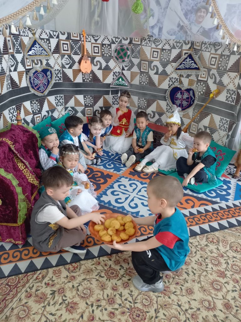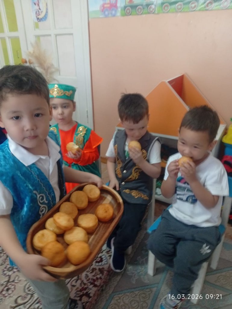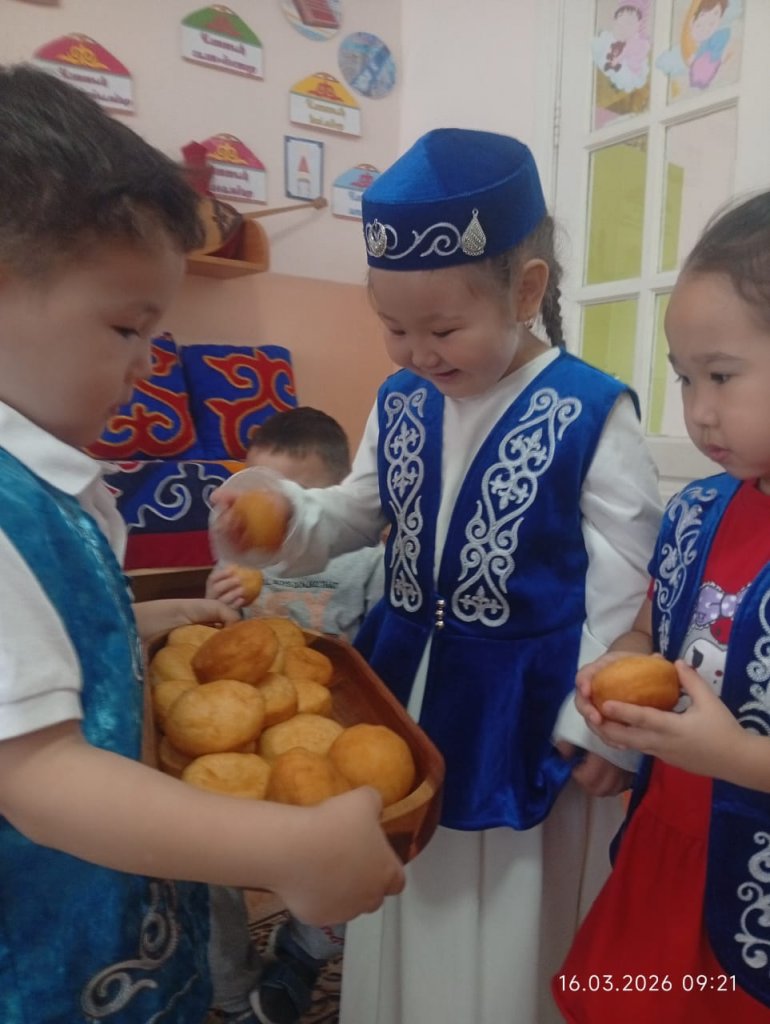"Еркетай" ересек тобында «Бауырсақ- PARTY» ерекше мерекесі өтті. Бауырсақ – халқымыздың дастарханындағы ең қадірлі тағамдардың бірі. Ол қуаныштың, молшылықтың және қонақжайлылықтың белгісі. Әсіресе мерекелерде, соның ішінде Наурызда, бауырсақ әр шаңырақта пісіріледі. 🍽️🌸 «Еркетай» тобының ата-аналары балаларымызға ұлттық құндылықтарды үйрету – біздің ортақ міндетіміз деп санайды. 👨👩👧👦 Үйде бірге бауырсақ пісіріп, оның мән-мағынасын түсіндіру арқылы балаларымыздың ұлттық тағамға деген құрметін арттырады. 💖Балаларымыз ата-аналарымен бірге бауырсақ пісіріп, ұлттық тағамның маңыздылығын түсініп, оны бір-бірімен бөлісіп, тамашалады. 🍪🎉 Ұлттық тағам – ұлттың айнасы!