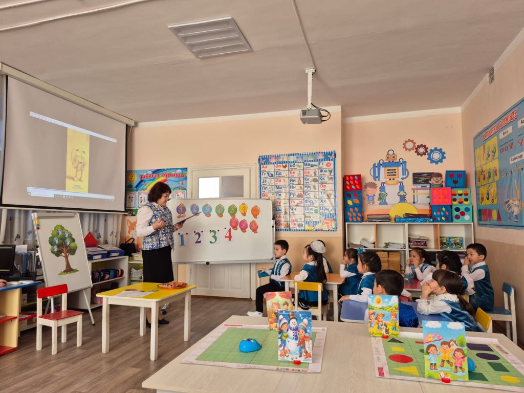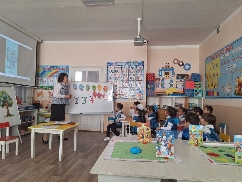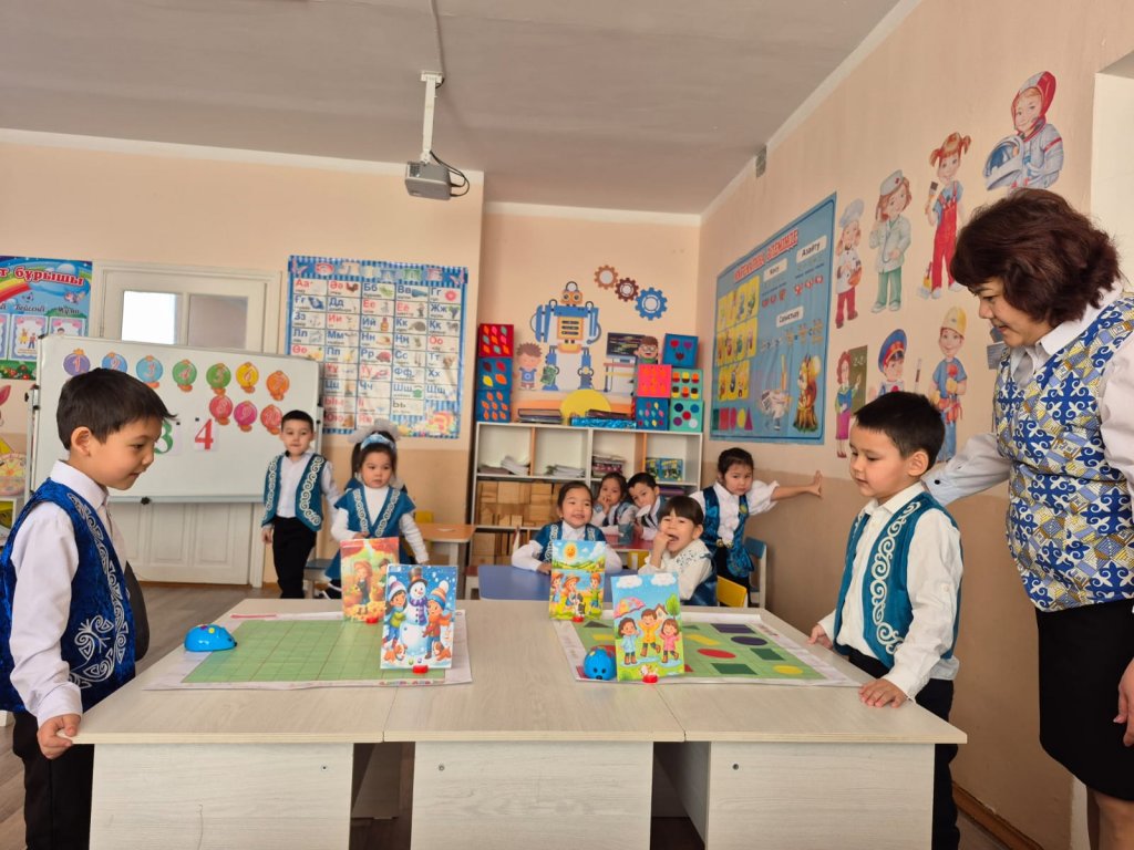МКҚК «Ақбота» бөбекжайының мектепалды «Қошақан» тобында «Жыл мезгілдері. Жыл айлары» тақырыбында ашық ұйымдастырылған іс-әрекет өткізілді. Ұйымдастырылған іс-әрекет барысында балалар сандарды санау, геометриялық пішіндерді ажырату және жыл мезгілдері туралы білімдерін бекітті. Заманауи әдіс-тәсілдер мен жасанды интеллект элементтері қолданылып, балалардың қызығушылығы жоғары деңгейде болды. Роботтышқанмен жұмыс жасау арқылы балалардың танымдық белсенділігі арта түсті. Іс-әрекет мазмұнды, әрі нәтижелі өтті.