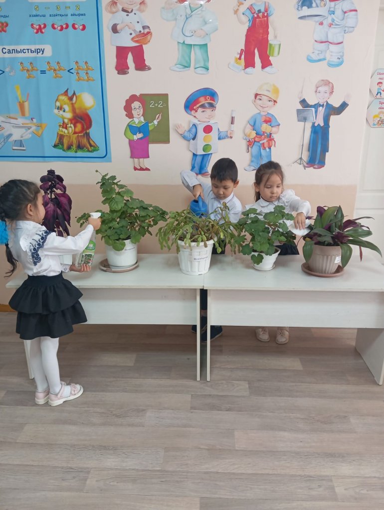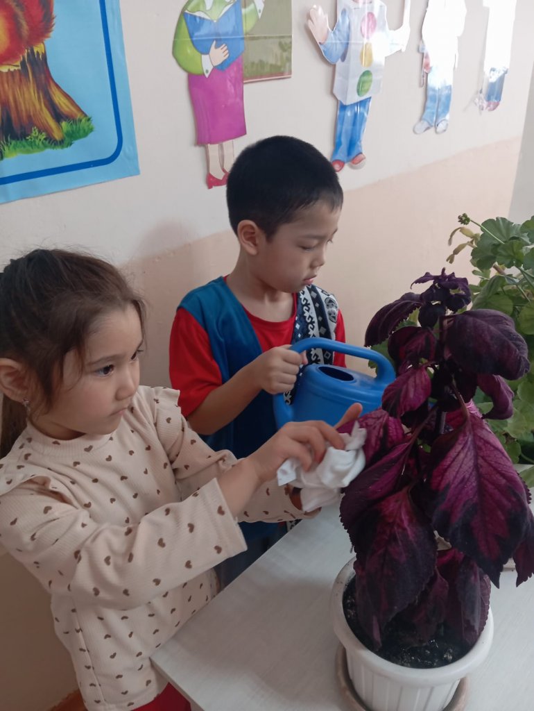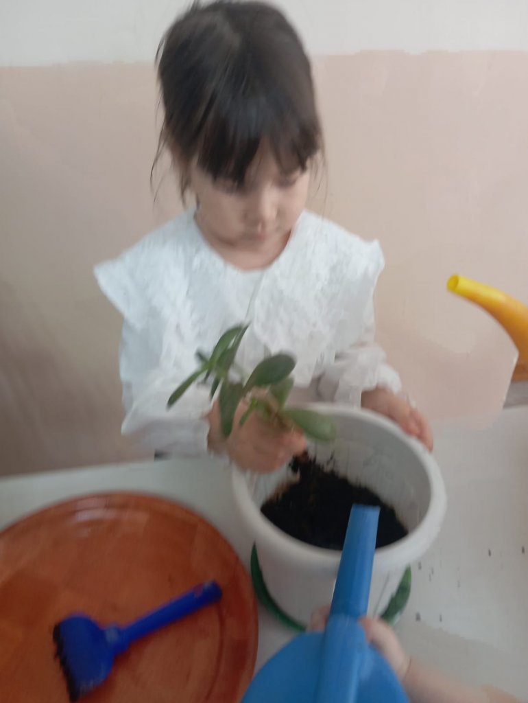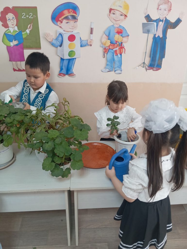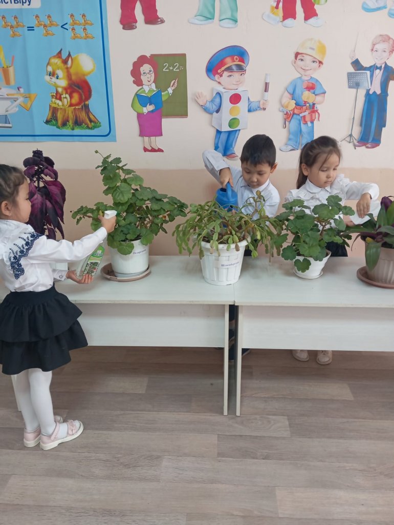 Бұл күні бүлдіршіндерімізбен бірге топтағы гүлдерге күтім жасап, олардың топырағын қопсытып, жапырақтарын сүртіп, су құйдық. 🌿 Сонымен қатар, балалар өз қолдарымен гүл отырғызып, табиғатқа деген сүйіспеншіліктерін көрсетті.