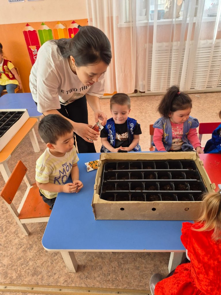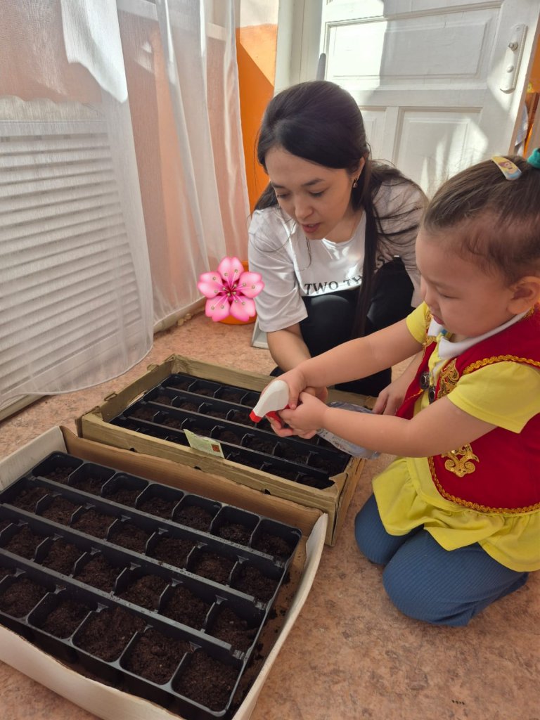 «Жаңару күні» мерекесіне орай «Ақбота» бөбекжайының кіші «Күншуақ» тобында ата-аналардың көмегімен тәрбиелік маңызы зор іс-шара ұйымдастырылды. 🌸Балалар гүл отырғызу арқылы еңбекке баулып, табиғатқа деген сүйіспеншіліктерін арттырды. Тәрбиеші апайлар балаларға гүлді қалай күтіп-баптау керектігін түсіндіріп, табиғатты қорғаудың маңыздылығын айтып өтті. 🌿Сонымен қатар балалардың зерттеушілік дағдыларын қалыптастыру мақсатында алдағы уақытта гүлдердің күнделікті өсу кезеңдерін бақылау жұмыстары жүргізіліп, олардың қызығушылығын арттыру көзделеді. 🔍🌱Бұл іс-шара бүлдіршіндердің экологиялық мәдениетін қалыптастырып, табиғатты құрметтеуге тәрбиелеуге бағытталды. 💚Отырғызылған гүл өсінділері өсіп жетілген соң, оларды даладағы ойын алаңына отырғызу жоспарлануда. 🌱😊
