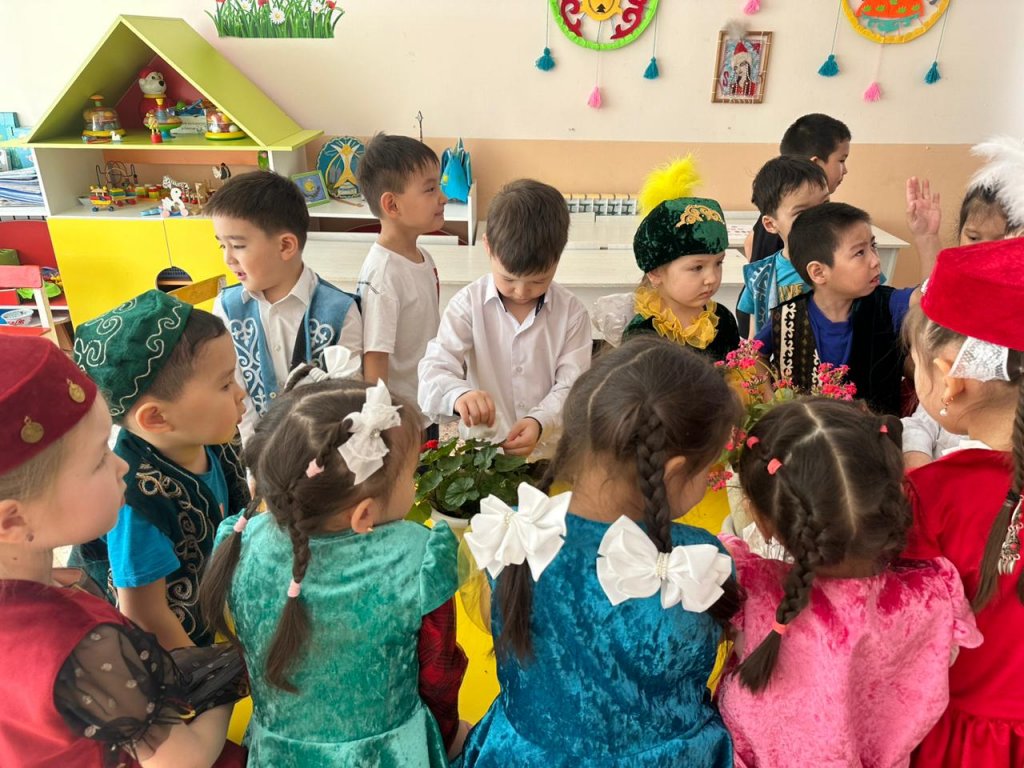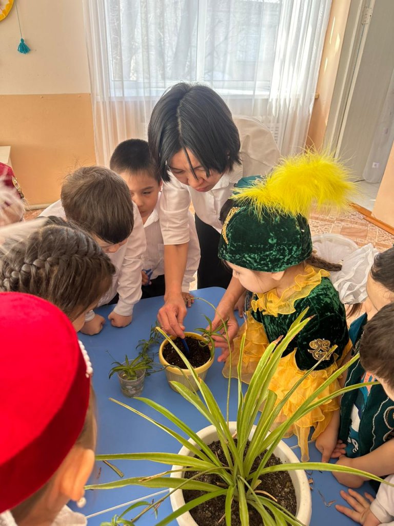 Экологиялық тәрбие беру мақсатында ұйымдастырылған «Жасыл желек» іс-шарасына «Ақбота» бөбекжайының мектепалды «Құлыншақ» тобының балалары да өз үлестерін қосты. 🌸 Балалар топтағы гүлдерге күтім жасап, жаңа гүлдер отырғызып, табиғатқа деген қамқорлықтарын көрсетті. 🌿 Әрбір бүлдіршін жасыл желектің маңызын түсініп, оны аялауды үйренді. Бұл іс-шара балалардың табиғатқа деген сүйіспеншілігін арттырып, экологиялық мәдениетін қалыптастыруға бағытталды. 💚
