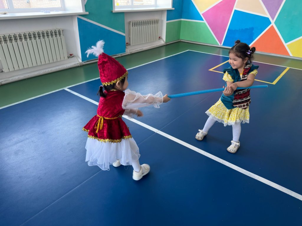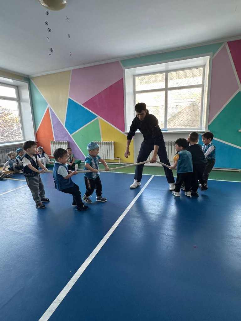 Ұлттық ойындар мерекесіне орай ортаңғы топтар арасында ұлттық ойындар ұйымдастырылды. Балалар белсене қатысып, халқымыздың дәстүрлі ойындарын ойнап, ерекше көңіл күйге бөленді. Іс-шара барысында арқан тартыс, асық ату, бес асық, оқтау тартыс және қол күрес ойындары ойналды. 🏆 Бұл ойындар балалардың ептілігін, жылдамдығын және ұйымшылдығын дамытты. Ұлттық ойындар арқылы балалар ұлттық құндылықтарды бойына сіңіріп, салт-дәстүрімізбен тереңірек танысты. 💫
