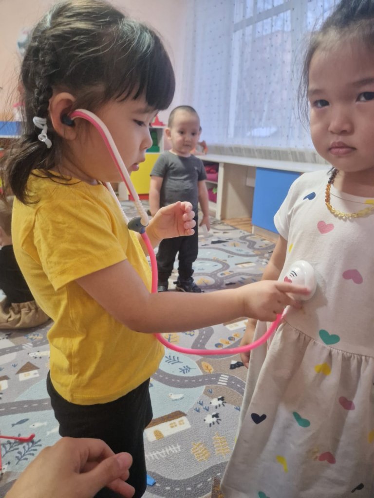 МКҚК «Ақбота» бөбекжайының ортаңғы «Балапан» тобында «Бірге ойнаймыз: Мамандықтар» тақырыбында ойын әрекеті ұйымдастырылды. Іс-шараның мақсаты – балаларды әртүрлі мамандықтармен таныстыру, еңбекке құрмет сезімін қалыптастыру және бірлесіп ойнау дағдыларын дамыту.