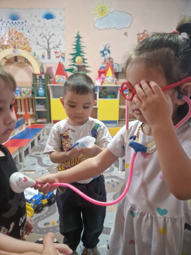 Іс-әрекет барысында тәрбиеленушілер дәрігер, құрылысшы мамандықтары туралы түсінік алып, олардың қоғамдағы маңызы жөнінде әңгімелесті. Рөлдік ойындар арқылы балалар мамандық иелерінің еңбегін бейнелеп, ойлау қабілеті мен тіл байлығын дамытты. Сонымен қатар, балалар түстерге байланысты қимыл-қозғалыс ойындарын ойнап, белсенділік танытты.