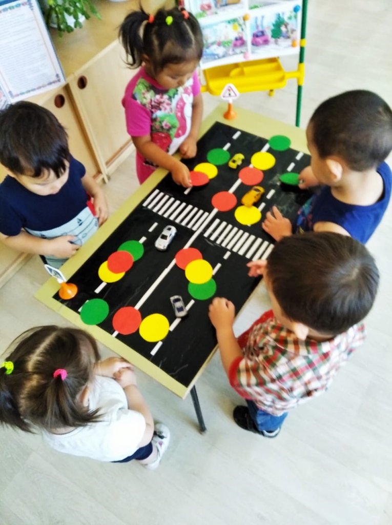Обучение правилам дорожного движения в детском саду-это жизненная необходимость.Поэтому различные мероприятия по ПДД всегда актуальны.В ГККП " Ясли-сад"Акбота"(ул.Циалковского 10) в младшей группе"Крепыши" воспитатель Решетняк Надежда Михайловна провела тематическое занятие на тему"Красный, жёлтый, зелёный".К ребятам в гости пришёл красавец светофор и рассказал о своих сигналах и о том, что именно он помогает правильно двигаться машинам и пешеходам, чтобы не случилось аварии.Подарил ребятам дидактическую игру"Правила дорожного движения".А ещё Светофорчик рассказал малышам, что означают его сигналы-красный, жёлтый, зелёный и предложил поиграть с сигналами светофора.А затем ребята самостоятельно попробовали собрать светофор.Довольный Светофорчик пожелал ребятам удачных прогулок на улице.