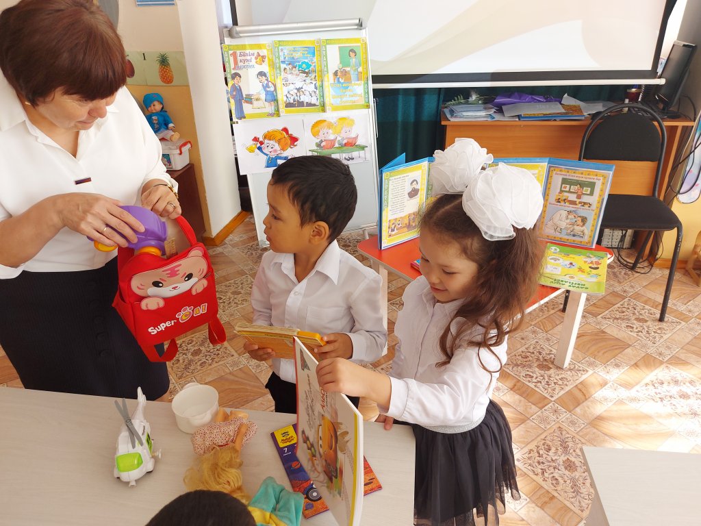 "Құлыншақ" даярлық тобында білім күні орай "Білімге ұмтылу, еңбексүйгіштік және отаншылдық " тақырыбында тәрбие сағаты өткізілді. Балалар суреттермен танысып, сұрақ-жауап арқылы өз ойларын айтты, "Оқу құралдары" деген ойын ойнатылды. Балалар сұрақтарға да дұрыс жауап бере білді, ойынды да қызыға ойнады. Алғашқы Білім күні қызықты өтті.