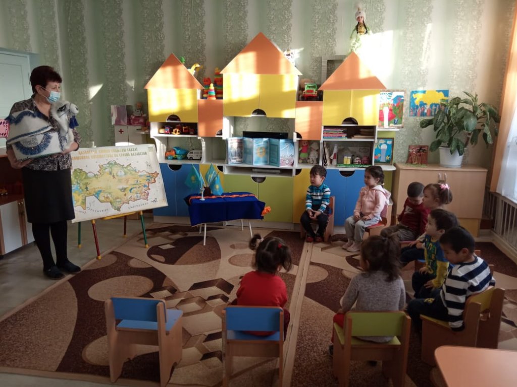 В рамках реализации программы " Рухани жаңғыру" и ко Дню Первого Президента в ясли- саду " Акбота" по ул.Циалковского 10 воспитателями младшей группы" Крепыши" Решетняк Н.М. и Крупко И.А. 23.11.2020г было проведено тематическое занятие " День Первого Президента".