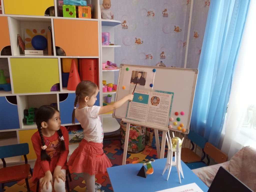 Циолковский көшесіндегі "Ақбота" бөбекжайының "Қарлығаш"тобында тәрбиеші Жолдасова Айшолпан Болатовнаның ұйымдастыруымен "Тұңғыш Президент" күніне арналған тақырыптық оқу қызметі өтті.