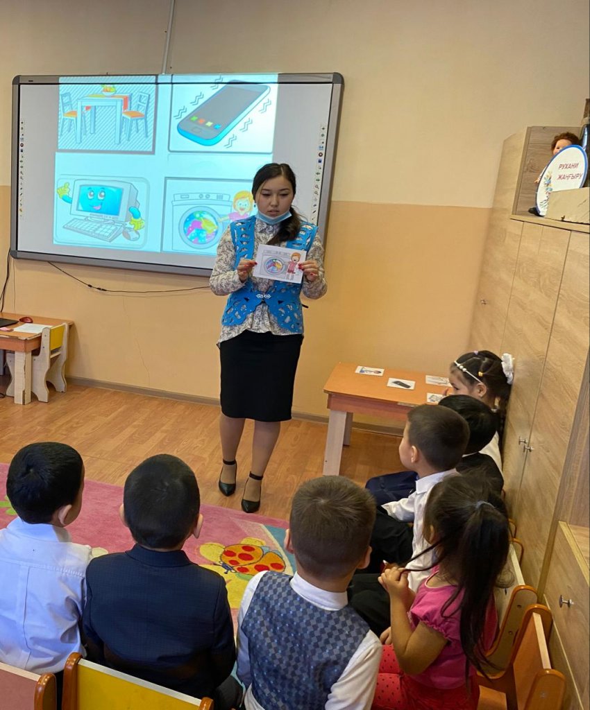 Уәлиханов көшесіндегі МКҚК «Ақбота» бөбекжайының ағылшын пәнінің мұғалімі Сейсен Аягуль Толепбергеновнаның ұйымдастыруымен мектепалды «Құлыншақ» тобында «Helping your Mum and Dad» атты ашық ұйымдастырылған оқу қызметін өткізді.